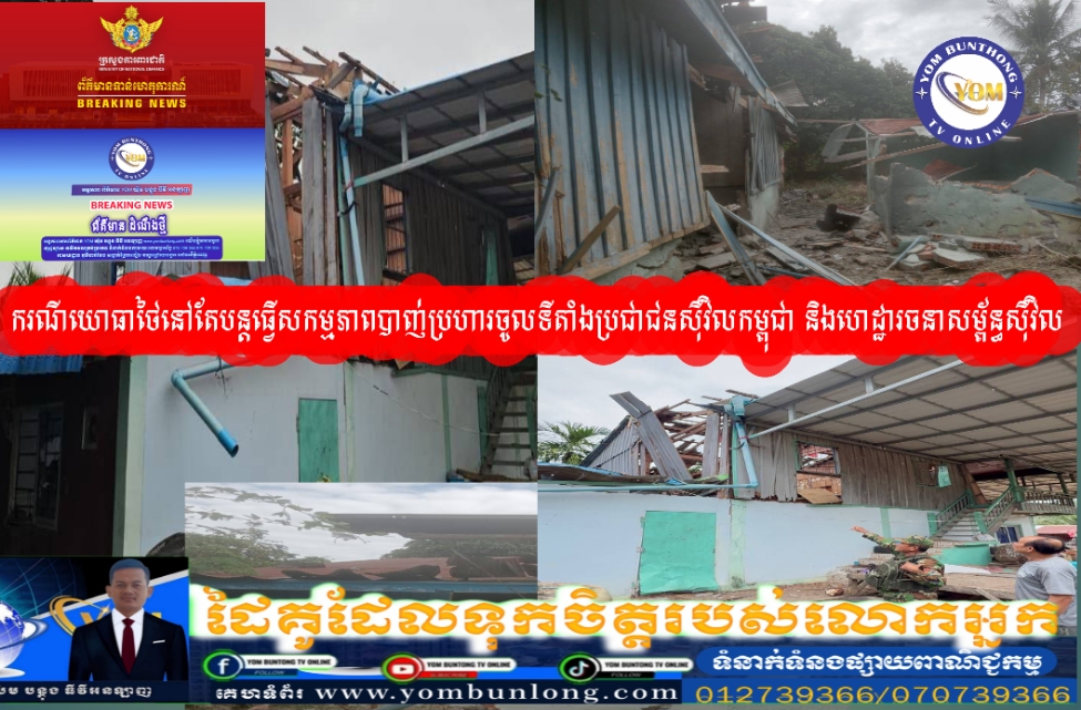 សូមជម្រាបជូននូវស្ថានការណ៍នៅតាមបន្ទាត់ព្រំដែនកម្ពុជា-ថៃ អំពី ករណីយោធាថៃនៅតែបន្តធ្វើសកម្មភាពបាញ់ប្រហារចូលទីតាំងប្រជាជនស៊ីវិលកម្ពុជា និងហេដ្ឋារចនាសម្ព័ន្ធស៊ីវិល នៅយោធភូមិភាគទី៥ ក្នុងភូមិសាស្រ្ត ស្រុកភ្នំព្រឹក និងស្រុកសំពៅលូន ខេត្តបាត់ដំបង នាថ្ងៃទី២២ ខែធ្នូ ឆ្នាំ២០២៥៖