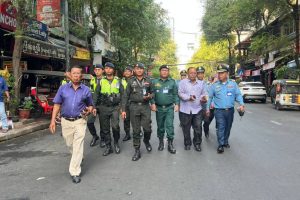 នាព្រឹកថ្ងៃទី២០ ខែមីនា ឆ្នាំ២០២៦នេះ កម្លាំងគណៈបញ្ជាការឯកភាពរដ្ឋបាលខណ្ឌដូនពេញ ដឹកនាំដោយលោក កៅ សារ៉ាវុធ អភិបាលរង នៃគណៈអភិបាលខណ្ឌ បានចុះត្រួតពិនិត្យតាមមូលដ្ឋានអាជីវកម្ម រួមមានភោជនីយដ្ឋាន អាហារដ្ឋានទេសចរណ៍ (បារបារាំង) ព្រមទាំងរៀបចំសណ្តាប់ធ្នាប់របៀបរៀបរយសាធារណៈ តាមបណ្តោយផ្លូវលេខ១១០ ផ្លូវលេខ១១៨ ផ្លូវលេខ១៣០ និងផ្លូវលេខ១៣៦ ចាប់ពីកំណាត់ផ្លូវលេខ១៣ ដល់តិរវិថីព្រះស៊ីសុវត្ថិ ក្នុងសង្កាត់ផ្សារកណ្ដាលទី១ និងសង្កាត់វត្តភ្នំ ខណ្ឌដូនពេញ។